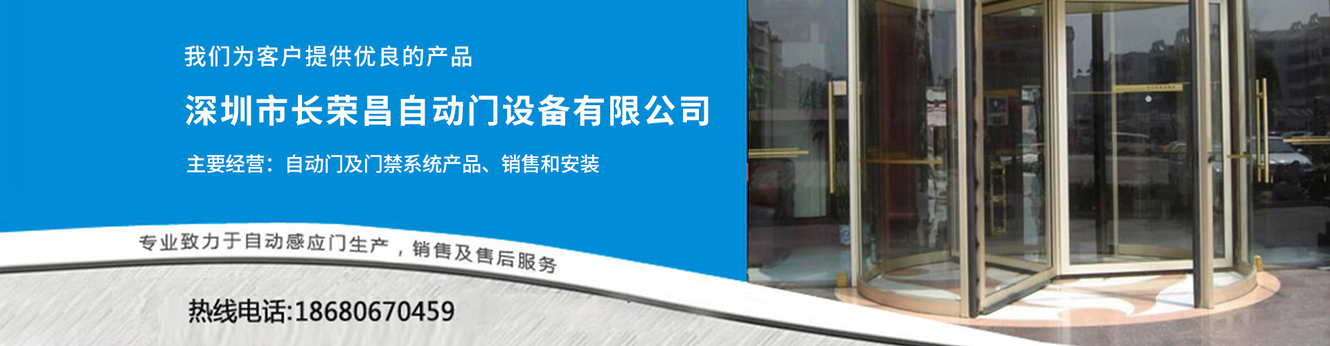 深圳市长荣昌自动门设备有限公司(18680670459)专业代理国际知名品牌批发:无声门材料,销售松下,多玛,皇冠,贺多龙,韩国现代,德瑞克等名优自动门机器。自动感应门、伸缩门、卷闸门、防火门、复合门、自动平开门、旋转门、圆弧门、气密门、门禁指纹机、人脸识别门禁一体机、办公考勤系统、门禁等门控配套产品。多年来本着顾客至上、诚信为先的价值观念赢得了广大消费者的认可与信赖。我们以‘质量求生存,信誉求发展’,质量保证,精益求精使我们的宗旨。并与国内多家地产开发商及装饰设计公司建立了长期的战略合作关系!【详情】